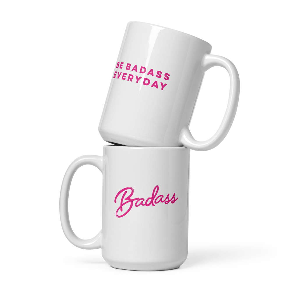 Badass Script 15 oz. White Mug Be Badass Everyday